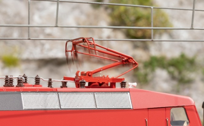 Dabei erhält dieses Modell nun erstmalig elektrisch heb-und-senkbare Pantografen, einen beleuchteten Führerstand inkl. Lokführerfigur, neue fein detaillierte Pantografen, einen detaillierteren Dachaufbau, separat angesetzte Griffstangen. Die höhe der Puffer wurde auf NEM-Norm angepasst.